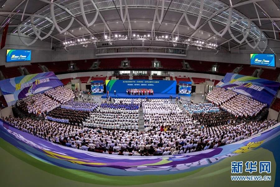 武漢五環(huán)體育中心是2019年第七屆世界軍人運(yùn)動(dòng)會(huì)主要比賽場(chǎng)館之一,將承接軍運(yùn)會(huì)田徑、乒乓球和水上救生等三項(xiàng)賽事。包含3萬(wàn)座體育場(chǎng)、8000座體育館和1000座游泳館,三大類(lèi)場(chǎng)館以體育場(chǎng)為核心,兩館分居兩翼,呈品字形分布,狀如鳳凰展翅,頗具荊楚風(fēng)韻。